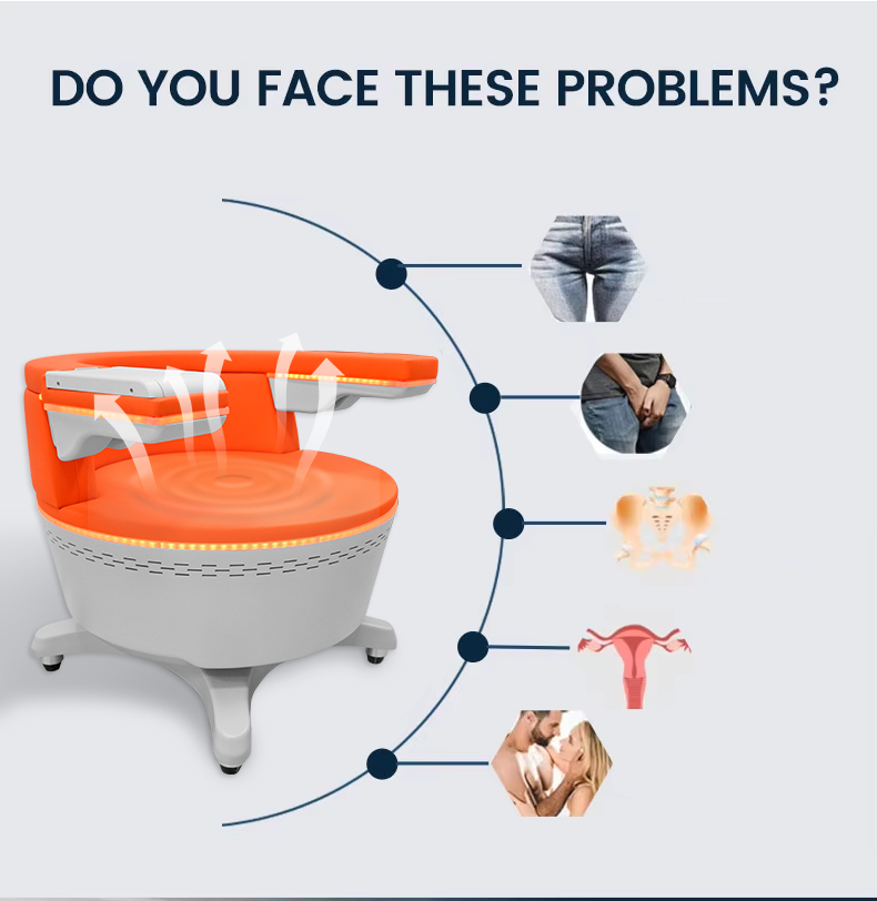 The EMSLIM Pelvic Floor Muscle Repair Chair is a powerful and non-invasive machine designed to restore pelvic floor muscle strength, improve vaginal health, and enhance overall well-being. This advanced system uses electromagnetic technology to stimulate deep muscle contractions, promoting muscle toning and fat reduction in the pelvic area. Ideal for postpartum recovery and addressing common issues like urinary incontinence and pelvic pain, the EMSLIM Chair offers a safe, effective alternative to invasive treatments.
